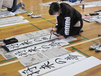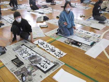 書き初め大会5・6年生 公開日 2024/01/16 更新日 2024/01/16 6年生 今日は5・6年生の書き初め大会でした。6年生は「将来の夢」、5年生は「新しい風」の文字を書きます。6年生が集中して落ち着いて取り組む態度はさすがでした。