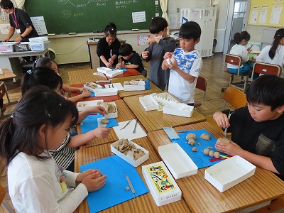 3年生図工「きって かきだし くっつけて」 公開日 2024/04/26 更新日 2024/04/26 3年生 3年生が図工の授業で、用具を使って切ったり、かき出したりした粘土を使って面白い形を見つける学習をしました。 使ったことのない用具もあるので、興味津々です。