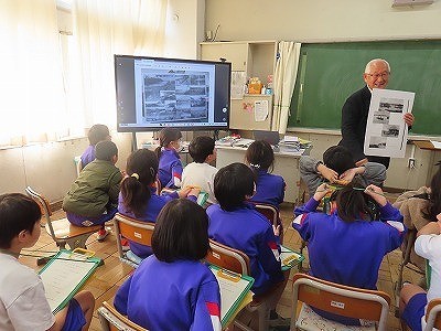 3学年 社会科特別授業 公開日 2025/03/07 更新日 2025/03/07 3年生 本日は、湊第1地区民生委員の磯崎 滿先生をお招きし、社会科特別授業が開かれました。那珂湊の昔の様子をお話していただきました。子どもたちは、海門橋などの昔の写真を見て、今との違いに驚いている様子でした。
