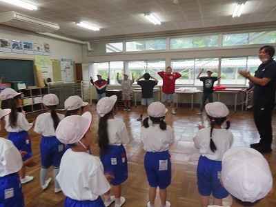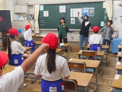 朝の時間に、1年生の応援の練習が行われました。応援団が2つの教室に分かれた、1年生に、応援の仕方を教えていました。紅組も白組も、元気よく応援の練習ができました。