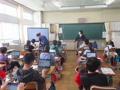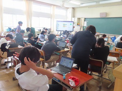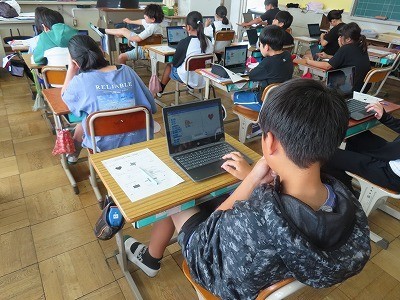 6年生が、ICTの支援員の先生と、算数の「対象な図形のプログラミング」を行いました。点対称や線対称の図形を作るために、角度を何度動かしたらいいか、どのような指令のブロックを使うかなどを考えます。各自の進度で、それぞれ考えながら、いくつかの課題に取り組みました。