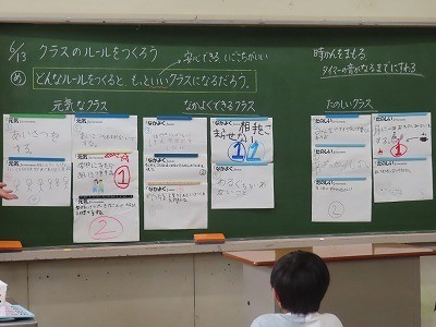 学級目標についてのルールづくり 公開日 2025/06/16 更新日 2025/06/16 3年生 3年生が、学級目標をもとに、「どんなルールをつくるともっといいクラスになるだろう」というめあてで、教育研究所の先生と、授業をしました。「なかよくするためには」「楽しいクラスにするためには」どうしたらいいかを、グループごとに考えました。目標を振り返りながら、より良いクラスをつくっていきます。