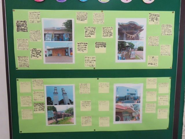 みなさんは、階段の踊り場の掲示物を知っていますか?湊一小では、各学年で割り振られているスペースがあり、学年の学びを掲示しています。学年やブロックの発達段階に応じて、社会科や生活科での学びを表現してます。