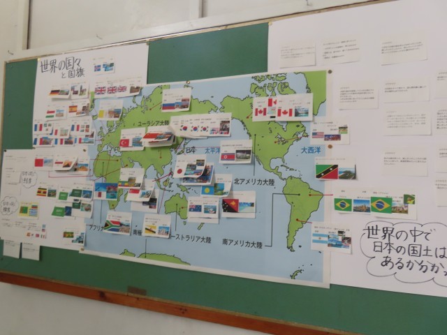 今回は2年生の学区探検、4年生の都道府県の特色、5年生の世界の国々と国旗となっています。