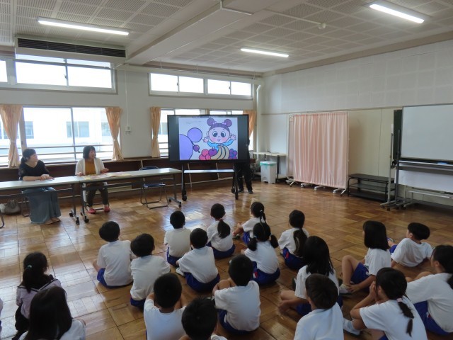 2年生で読み聞かせがありました。「もったいないばあさん」と「スイミー」を読んでいただきました。国語でこれから「スイミー」の学習をするのを楽しみにしている様子でした。「もったいないばあさん」では、食べ物を残さず食べる大切さを学び、食べ物を粗末にしないようにする意識が高まったことで、給食を完食できた児童がたくさんいました。有意義な朝の時間のおかげで、明るく一日を始めることができました。