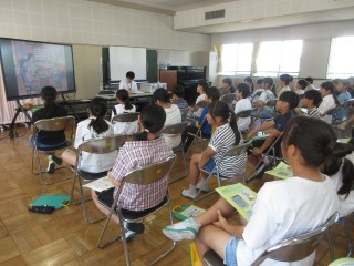 実際に6年生も払っている消費税から、税金とはなにかについて講話を聞きました。税金がなかったらというDVDを集中して見ていました。