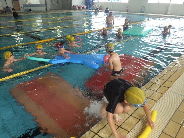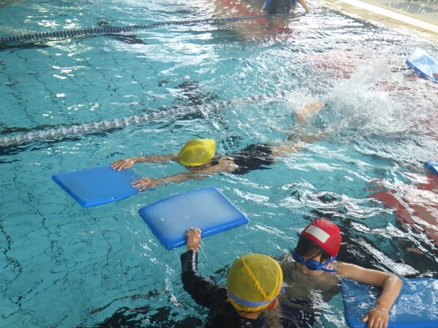 2年生は、本年度最後となる水泳学習を行いました。潜ることに精一杯だった児童も、けのびができるようになったり、泳げる距離が伸びたりと、成長が随所に見えました。10分ほどのフリータイムでは、浮き輪やボールで楽しむことができました。茨城スイミング様、大変お世話になりました。
