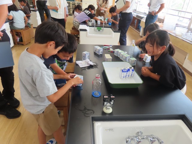 2年生の算数では、水のかさを勉強しました。身近なペットボトルや、牛乳パックを使って、dlの単位を学習しました。