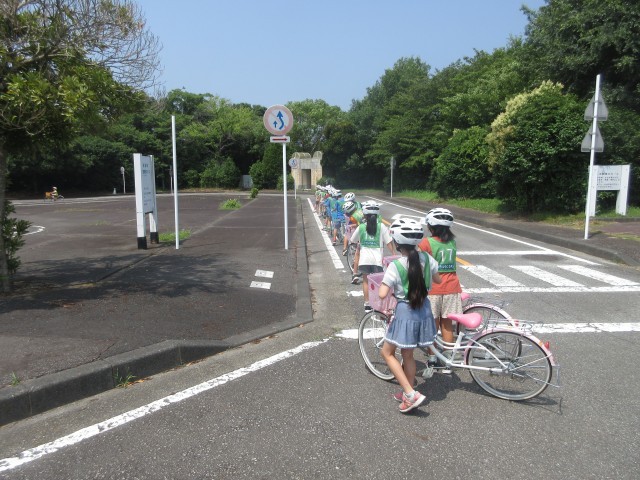自転車に乗る前の点検の方法や、公道でのルールの確認を行いました。