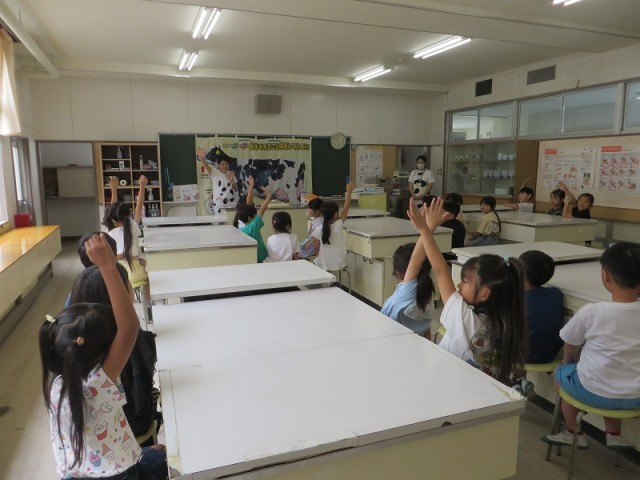 1年生 ミルク教室 公開日 2025/07/10 更新日 2025/07/10 1年生 1年生ミルク教室が開かれました。手作りバターをクラッカーと一緒に味見しました。美味しそうに食べる様子が見られました。