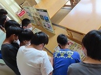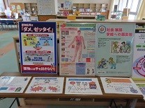 説明後は、薬物乱用防止に関する掲示を5、6年の児童たちが熱心に見ていました。