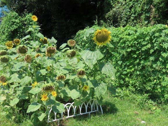 夏の日差しが照り付ける中、学校裏の観察畑では、いろいろな植物が元気に成長しています。つるれいし(ゴーヤー)、ひまわり、落花生、さつまいもなどなど...。ゴーヤーは、暑すぎるせいで、早くも熟してしまい、種が赤くなってしまうものもあります。落花生は、なんといってもカラスが天敵です。9月に学校に来た時には、どんな風になっているか、おたのしみに!!