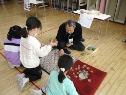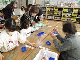 12月11日(木)、地域の方々においでいただき、1年生が昔遊びを教えていただきました。
