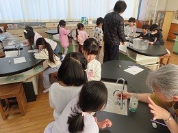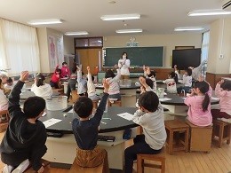 12月18日(木)の1時間目に、1年生が算数の「かさくらべ」の勉強をしました。大きさの違うペットボトルに実際に、水を入れて、マスに水を入れて「かさくらべ」をしました。「一つ分」や「いくつ分」など、算数の大事な言葉につながる勉強でした。活発に意見を出す1年生に成長を感じました。