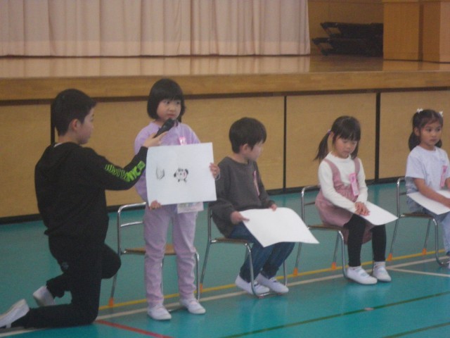 4月17日(金)1年生を迎える会を行いました。1年生は、6年生と手をつないで花のアーチをくぐって入場です。1人ずつ自分の名前と好きなものを発表できました。二小のキャラクター二子丸の登場やじゃんけん列車では、みんなニコニコ。最後に1年生も一緒に大きな声で校歌を歌い、すっかり二小の一員です。今日のために、6年生はたくさんの準備や練習をしてきました。やさしさがいっぱいつまった、すてきな会となりました。