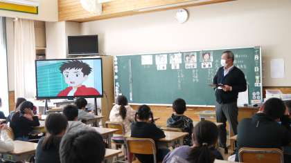 昨日の3校時、人権擁護委員の櫻井先生をお迎えして、4年生の教室で人権教室が行われました。身近にありそうなお話をアニメで視聴し、その中の登場人物の気持ちを想像しながら、いじめについて考えていくことができました。4年生は、お話をしっかり観たり、質問に自分から答えたりしながら、意欲的に学習することができました。