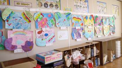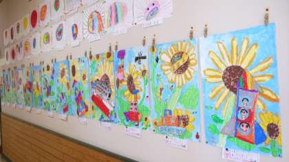 校舎内では、校内絵画展に向けて、児童の絵画が飾られ始めました。たくさんの色を使った生き生きとした作品が校舎内に花を添えています。保護者の皆様、来週の学校公開の日にぜひご覧ください。