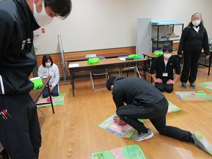 今週の水泳学習を前に,先生たちが心肺蘇生の研修を行いました。あっぱくんを使い,動画を見ながら,ロールプレイをしました。実際に胸骨圧迫をしてみると,とても力が必要だとわかります。引率の先生たちの分担も確認しました。安全に水泳学習を行いたいと思います。