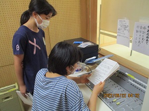 給食の放送で,市笑顔サミットに参加し,市内の各小学校の様々な取組を聞いて感じたことや,今後二小で取り組みたいと考えていることについて,8月4日の市笑顔サミットに参加した代表2名が全校児童にマイクを通して話をしました。今後,いじめ防止に向け,計画委員としてリーダーシップを発揮することを期待します。