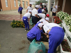 夏に花壇を彩っていた,マリーゴールドやブルーサルビアもいよいよ終わりに近づきました。来月,パンジーやビオラなど春満開になる花を植えるため,今週の昼休みに,子供たちが学年の花壇の花をぬいています。季節の変化を感じますね。