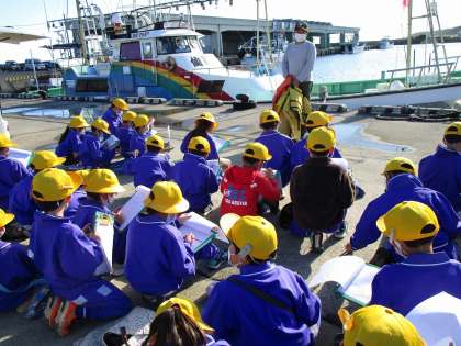 実際に漁をする船の乗船体験をしたり、タコ漁のしかけを見せていただいたりして、有意義な学習ができました。