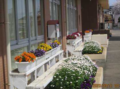 定期人事異動により、本校でも、この3月、職員の転退職がありました。今年も離任式が実施できなかったため、みなさまに改めてごあいさつはできませんが、どの職員も湊二小で勤務できたことに感謝をしています。今日は桜が満開で、学校の花壇も花盛りですが寂しい気持ちを味わっています。