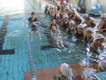 最初は体に力が入り、うまく浮くことのできない子供もいましたが、インストレクターの先生のテキパキとした指導で、授業の終わりには水を怖がらず積極的に挑戦する子供達の姿が見られました。
