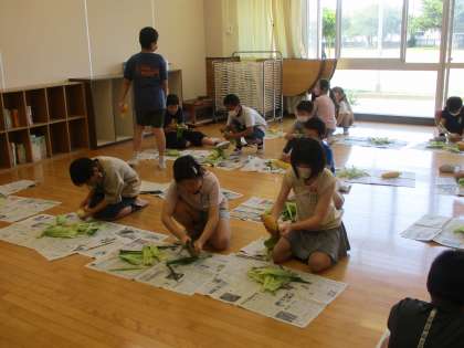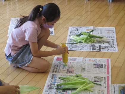 今日の給食のメニューには、朝採れたトウモロコシがありました。4年生が、朝、採れたてのトウモロコシの皮をむいてくれました。ゆでられたトウモロコシは甘くてとてもおいしく、まさに夏の味覚です。