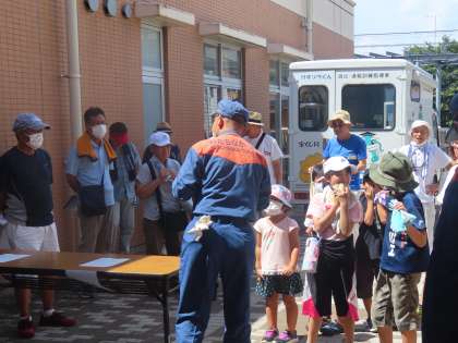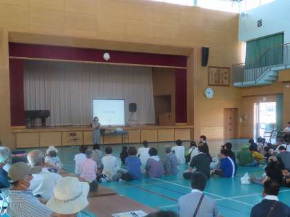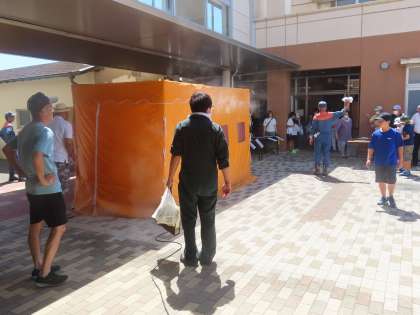 土曜日、奉仕作業後に、原子力機構や日赤、消防署、消防団など、関係機関に協力いただき二小地区の防災訓練が行われました。体育館で講話を聞いたり、DVDを見たりした後、煙体験や水消火器の体験などを実施しました。有事の際、地域の拠点は学校になります。私たちも、防災意識を高めるよい機会になりました。