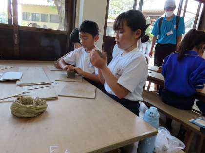 粘土をこねて茶碗やお皿、置物など、思い思いの作品を作り上げました。作品が仕上がるまで約60日かかるそうですが、できあがりを楽しみにしていました。