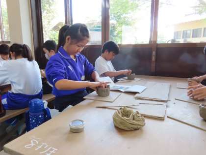 午前中は、桧佐陶工房で「手ひねり体験」をしました。