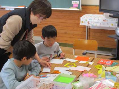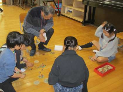 1年生 むかしあそび 公開日 2023/12/12 更新日 2023/12/12 校内行事 地域の方にご協力いただき、1年生が生活科のむかしあそびを行いました。お手玉、めんこ、切り絵などのグループにわかれてあそびを教えていただきました。