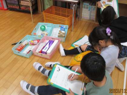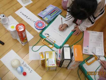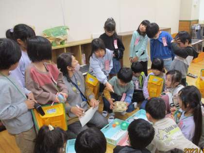 先週の金曜日の1年生の算数の授業の様子です。生活科のスペースを広く使い、集めた箱などを丸、四角、長四角など、理由付けしながらグループに分けていました。意欲的に考えを述べながら友達と協力し合って活動する姿が見られました。