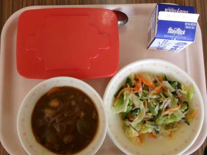 今日の給食はカレーでした。ホタテも入っていてとてもおいしかったです。