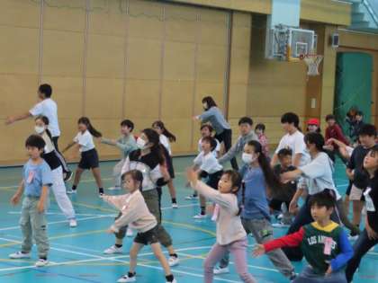 前回初めてソーランを見た1〜4年生も、指導する野田先生の踊りを見ながら初めから終わりまで踊りました。さすが、上達が早いです。