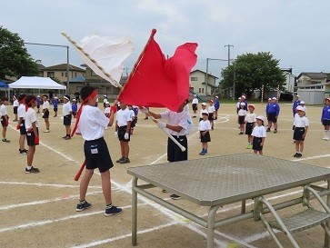 また、紅白対抗の種目(個人・団体種目)では、応援団がにぎやかな応援で盛り上げてくれました。