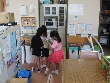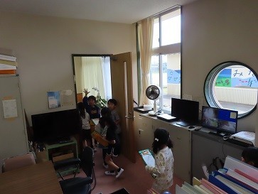 「しつれいします」「1ねんせいです。へやをみせてもらってもいいですか?」など、礼儀正しく立派な態度で探検をしていました。