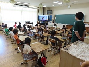 全校朝会では、校長から「不審者の学校への侵入の未然防止と迅速な対応に役立てる」という防犯カメラ設置の目的を1年生から6年生までの全校児童によく分かることばで説明がありました。