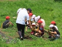 7月8日(火)、2年生が、生活科の時間に落花生の観察を行いました。中には花が咲いているものもあり、子供たちは大きさや触り心地など、ていねいに観察をしていました。観察後には、落花生がしっかり育つようにみんなで草抜きをしました。