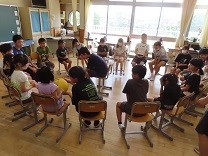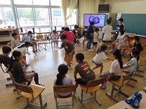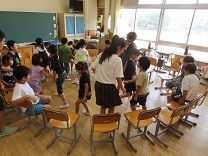 「何でもバスケット」や「いすとりゲーム」、「ばくだんゲーム(ボールを回して合図があったときにボールを持っていた人が次の鬼になる遊び)」など、高学年を中心に1年生から6年生までが一緒になって楽しく遊びました。