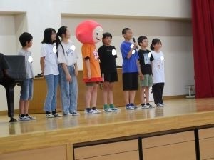 夏休み前集会では、代表委員会が夏休みの安全な過ごし方について分かりやすく、そして、楽しく全校児童の前で劇を披露しました。