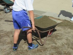 側溝とグラウンドの地面に段差が生じていたため、段差をなくすために砂を敷き詰めることになりました。