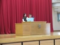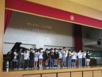 最後に、後期から、さらにみんなでがんばってよい学校を作っていこうという思いを込めて、6年生が作った「みんなで最強」を6年生が壇上で歌って集会が閉じられました。よりよい学校を作るために、自分たちで、考え話し合い、ルールを決めていくことを今後も大切にしていきたいです。