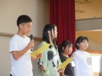 3年生と6年生の児童が、後期の目標や、がんばりたいことを発表しました。友達と協力して過ごしたい、最高学年として,みんなのお手本となるような行動を心がけたい、など自分の思いをしっかりと伝えていました。