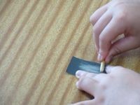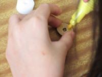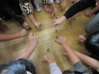 勝田工業の学生の方々に来ていただき、4年生は、出前授業のコマづくり体験を行いました。コマに色を塗ったり、棒を削ってコマの芯を作ったり、それを器具を付けて取り付けたりしました。各グループに高校生がついてくれて、作り方を丁寧に教えてくれたり、手伝ってくれたりして、お互い楽しく交流をすることができました。最後にみんなでコマ回し大会を行いました。つくったコマは、とてもよく回っていました。