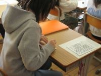 講師の方をお呼びして、4年生は点字教室を行いました。実際に自分で点字を打つ体験を行いました。