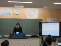 市の環境政策課の方がいらっしゃり、「身近な川」と題し、川の役割、川の水質、川をきれいにするために心がけることなどを教えていただきました。私たちの生活に欠かせない川の役割を理解し、川をきれいにしていこうという思いをもつことができました。
