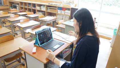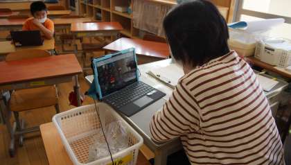 3年生が,オンラインホームルームを行っていました。担任の先生と楽しく会話をする姿が見られました。