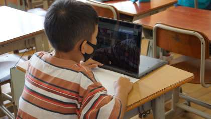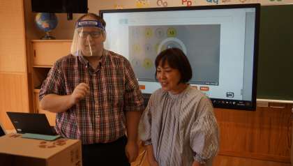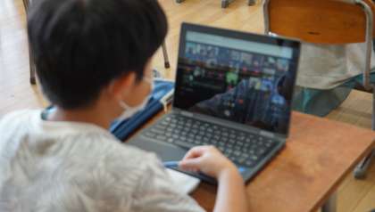 3年生が「英語」のオンライン学習を行いました。大きな声で,一生懸命に発音の練習を行いました。