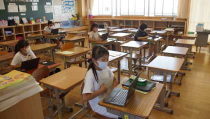 5年生は,オンラインホームルームでみんな笑顔で取り組んでいました。